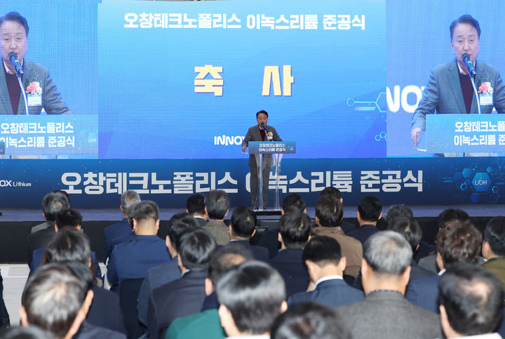 11일 충북도 등에 따르면 이녹스리튬은 이날 청주 오창테크노폴리스 산업단지에서 오창공장 준공식을 했다.