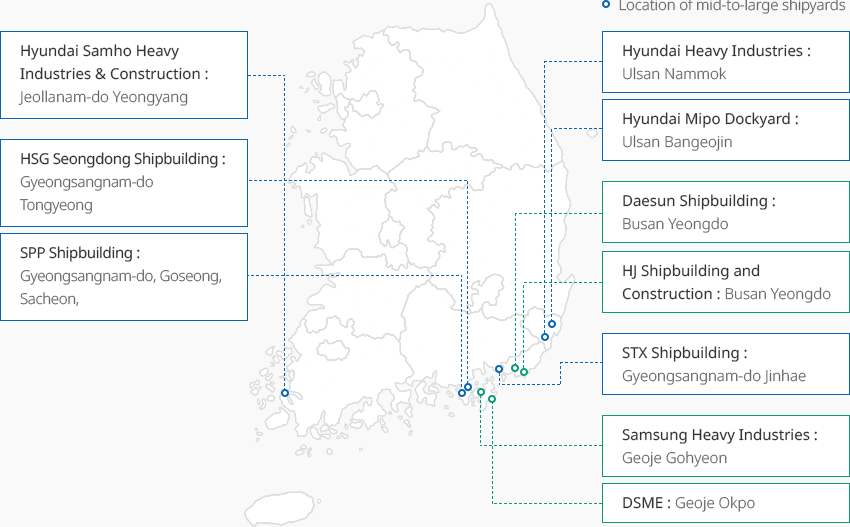 - 주요 중대형 조선소 : 현대삼호중공업