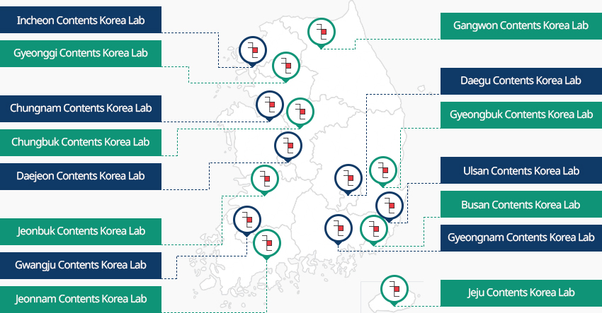 Balanced Development through the Establishment of Special Industrial Zones and the Promotion of Regional Cultural Content Industries 내용닫기Balanced Development through the Establishment of Special Industrial Zones and the Promotion of Regional Cultural Content IndustriesDesignation of cultural content business hubs, incubators, and special industrial zones for balanced developmentThe Korean government aims to create the ecosystem for regional content production and startup creation and contribute to balanced national development by establishing 16 content hubs nationwide and a total of 15 regional incubators for preliminary and early-stage startups. Moreover, special zones are designated by the types of cultural content unique to each region, and specialized projects are being implemented.A case in point in the Pangyo Game and Content Special Zone in Seongnam, Gyeonggi. A specialized project is ongoing with a total project budget of KRW 171.9 billion for the objective of creating by 2025 infrastructure for the game content industry and strengthening corporate support programs."Regional Incubators Supporting Preliminary and Early-stage Startups"