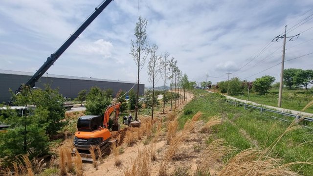 [고창=뉴시스] 이학권 기자 =전북 고창군은 미세먼지 없는 대기환경 조성을 위해 고창일반산업단지와 흥덕농공단지에 미세먼지 차단숲을 조성하고 있다. (사진 = 고창군 제공).2021.05.10. photo@newsis.com *재판매 및 DB 금지