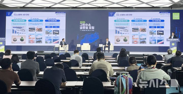 [세종=뉴시스]김동현 기자 = 2025 그린수소 글로벌 포럼이 지난 24일부터 오는 26일까지 3일간 제주 국제컨벤션센터에서 열린다.